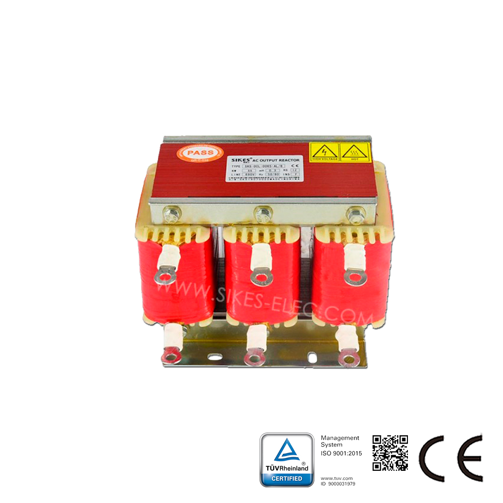 SKS-OCL series Load Reactors are placed in series with electrical equipment to introduce a specific controlled impedance to the AC circuit. This series are applied at AC drive output side to suppress inrush voltage, reducing inrush and peak current, improving real power factor, restraining grid harmonics and improving the output current waveform. Line Reactor also known as Output Reactor.