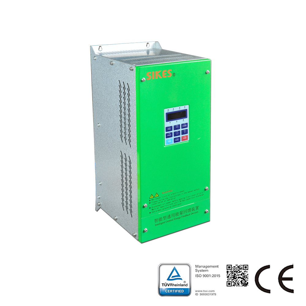 This series adopts microprocessor chip with fast respond, high-accuracy process control,making inverter operating in four-quadrant, continuously feedback,and regenerative braking frequency below 40%. Electric regeneration efficiency up to 97%. Using SPWM modulation to greatly reduce distinctive peaks of current and form perfect sine wave current, input side current THD lower than 5%, power factor up to 99%.It can prevent power grid flowing back, overheating, overcurrent, out of phase, undervoltage,and short circuit.